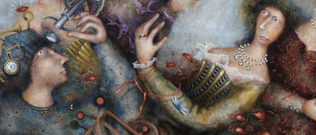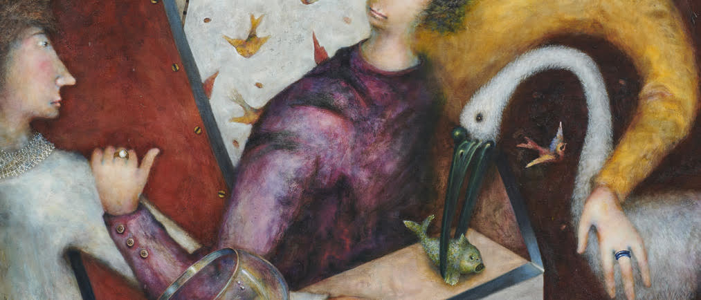 De hecho, una de mis piezas centrales y la cual me ha acechado como un fantasma a lo largo de los años, es El Hombre Azul. Parecido al primer arcano del Tarot de Marse - lla, El Mago, El Hombre Azul está en construcción: los magos, albañilas, alquimistas, demiurgos, trabajan de pie, sostenidos por una silla-mesa de tres patas (Produc - ción, distribución y consumo), la cual es el principal soporte de los materiales. Toda la pieza está realizada en función de la sección aúrea: 1.618. Ahí está la magia, y de ahí se mueve, se lleva, como si se tratara de un taller portátil. Mi obra debe verse como un asunto de carnaval, concepto principal en mi ocupación. Hay que recordar que en la Edad Media y en el Renacimiento el carnaval servía como una especie de válvula de escape. Era ahí donde se podían burlar del rey, cuando se coronaba no al más agudo, inteligente o sagaz, sino más bien al feo, al borracho o al monstruoso. En el carnaval, la risa idiota se intelectualiza, sin dejar la idiotez. Imagino en mi obra a una clase media riéndose de sí misma (la clase media en los países de América Latina es la realeza, la clase privilegiada) y de sus indultos. Me burlo y ella misma se burla de su apetito sexual, de su transformación en ninfómanos no admitidos. La risa ahora es de las clases olvidadas, de los marginales: ellos nos hacen burla; una burla de las clases omitidas por las clases con oportunidades, que no expresan pudor alguno en nuestros pueblos. Otra de mis influencias es la pintura criolla, sobre todo de Diego Quispe Tito, pintor del Virreinato del Perú. En su obra hay una cualidad que hoy podríamos pensar como naïf, lo que en español se traduce (no sin cierta cautela) como un estilo ingenuo. En él encuentro un uso del color y de la perspectiva que, si bien no siguen los cánones que llamamos “clásicos”, cumplen la función de engañar al ojo. Como el “trampantojo” de los pintores europeos de entonces. Se caracteriza por la representación de la flora y la fauna, de los paisajes de las montañas, y por la carencia de perspectiva. Inventa animales: aves de un bestiario andino o elefantes con orejas humanas, entre otros, todo ello con un lenguaje ya muy latinoamericano, y una expresión personal e íntima. Explico: yo soy del sur; mi familia es del Perú. En mi pintura, la ingenuidad del color y de las figuras no sólo se produce en la imagen por sí misma: el espectador hace lo suyo. Es un juego barroco de espejos: la risa rebota de persona a persona. Me río del espectador mientras él se ríe plenamente de mí y, ambos, nos reímos de la imagen y, a su vez, el título se ríe de nosotros. Algo hay de filosofía aquí, claro está, y también de aquella frase de Blaise Pascal: “Burlarse de la filosofía es ya filosofar. Así, el juego de burlas, de la coquetería y de la sátira, se compara con el doble sentido del albur. En él se combina la perspicacia no sólo del emisor sino del propio receptor. Por ello me identifico con Goya, en particular con Los Caprichos, esos grabados satíricos suyos, con algunos de los cuales un par de obras mías tienen una peculiar coincidencia. Yo sonrió también de mi capitulación, cuando no sé qué responder a ese pícaro recreo de frases.
